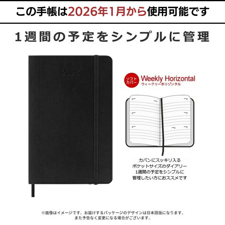 他の画像を見る 【週間ホリゾンタル】ソフトカバー/ポケット ブラックカバー 祝日シール付 2026年 手帳 1月始まり モレスキン 週間 ホリゾンタル[ヨコ型]ソフトカバー ポケットサイズ ブラック【レーザー名入れ無料】【メール便送料無料】 メール便無料 名入れ対応 価格 ¥ 3,630 税込 詳細を見る お気に入りに登録する