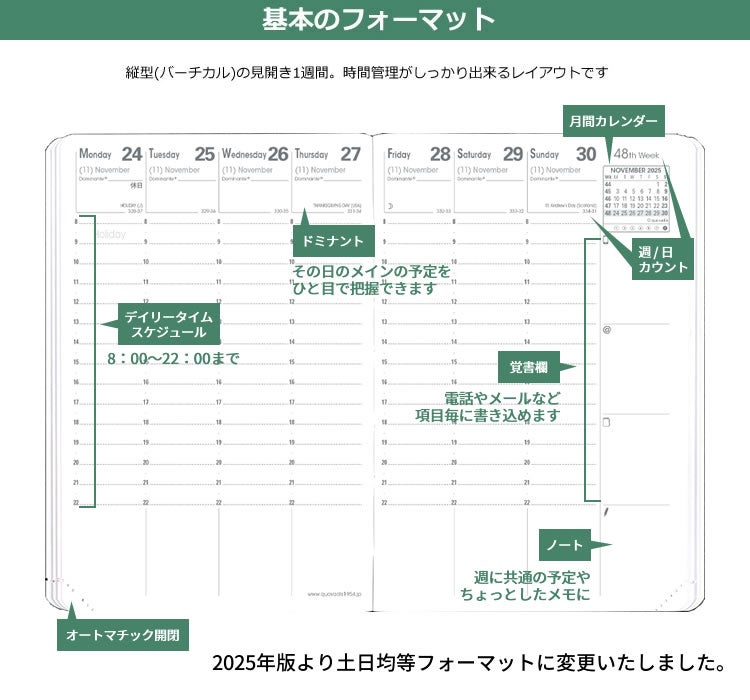 他の画像を見る ビジネスパーソンに高い人気を誇るジャパンエディション最大サイズ 2026年 手帳 クオバディス 週間 バーチカル[時間軸タテ]18×24cm トリノート アンパラ【メール便送料無料】 メール便無料 価格 ¥ 5,500 税込 カートに入れる お気に入りに登録する