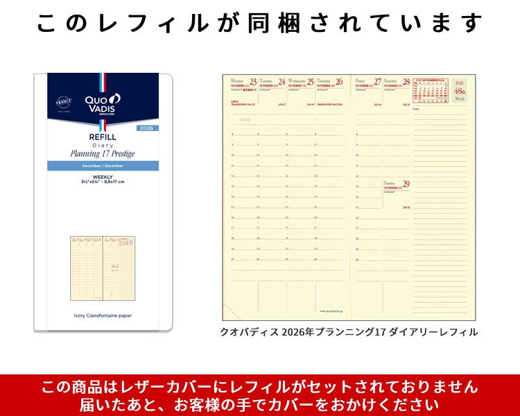 他の画像を見る 【リフィルのみ】2026年 クオバディス プレジデント 2026年 手帳 クオバディス 週間 バーチカル[時間軸タテ]21×27cm プレジデント リフィル[レフィル]【メール便送料無料】 メール便無料 価格 ¥ 5,940 税込 カートに入れる お気に入りに登録する