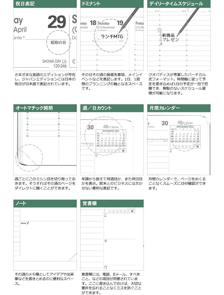 他の画像を見る クオバディスといえばこのユニークな正方形サイズ 2026年 手帳 クオバディス 週間 バーチカル[時間軸タテ]16×16cm正方形 エグゼクティブノート クラブ【メール便送料無料】 / 名入れ可能[有料] メール便無料 価格 ¥ 5,060 税込 詳細を見る お気に入りに登録する