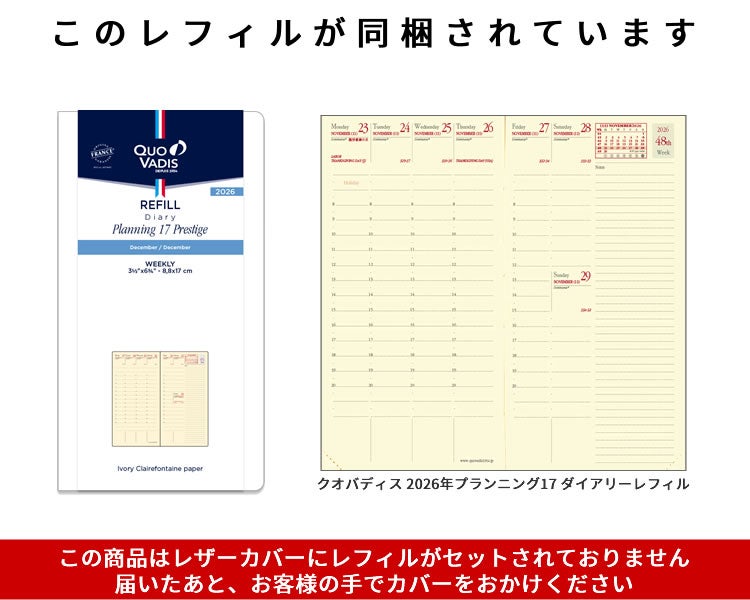 他の画像を見る 【リフィルのみ】2026年 クオバディス プランニング17 2026年 手帳 クオバディス 週間 バーチカル[時間軸タテ]8.8×17cm プランニング17 プレステージ リフィル[レフィル]【メール便送料無料】 メール便無料 価格 ¥ 2,200 税込 カートに入れる お気に入りに登録する