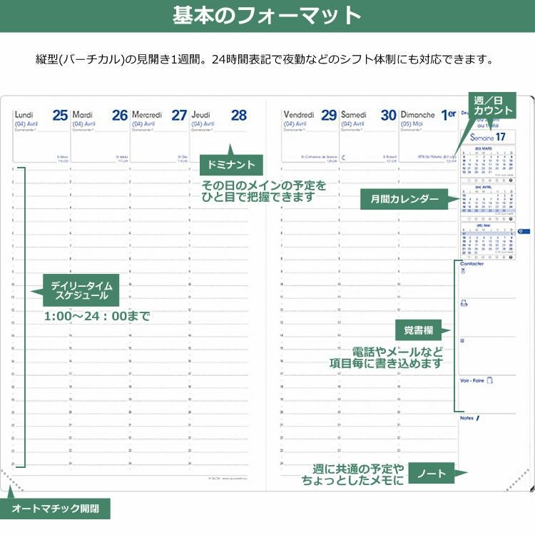 他の画像を見る 24時間タイプのアジェンダプランニング 2026年 手帳 クオバディス 週間 24時間 バーチカル [時間軸タテ]16×24cm H24/24 アンパラ【メール便送料無料】 メール便無料 価格 ¥ 5,280 税込 在庫切れ カートに入れる お気に入りに登録する