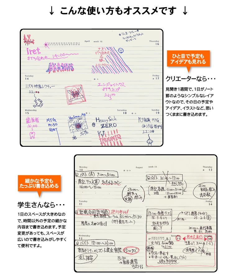 1週間の予定とメモを見開きで確認できる