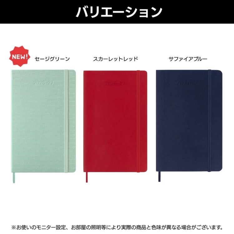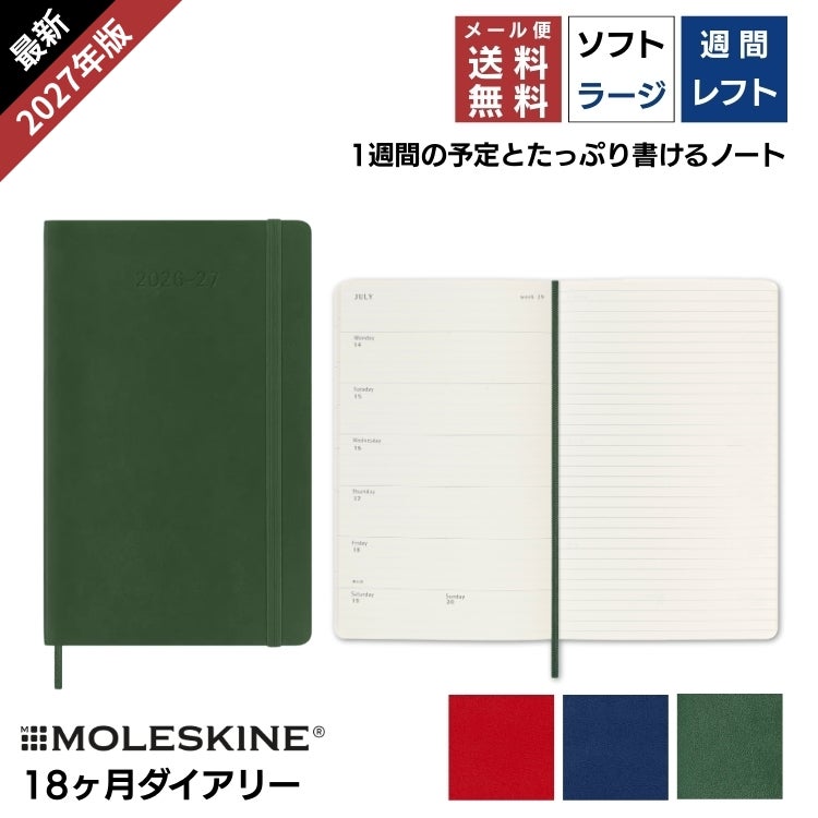 モレスキン 手帳 2027年 18ヶ月 ダイアリー 7月始まり 週間 レフト ウィークリー ソフトカバー ラージ カラーカバー【メール便送料無料】 2026年7月-2027年12月