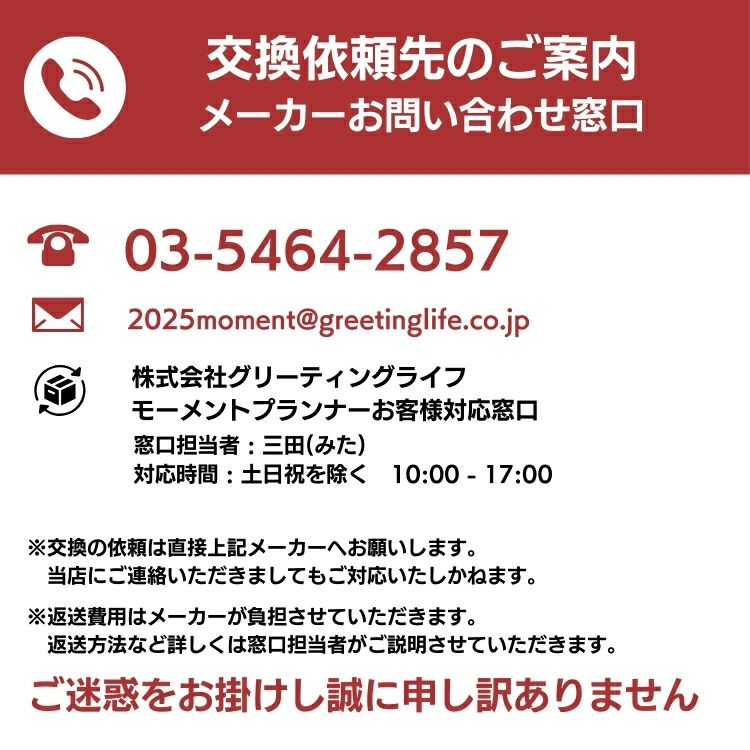 他の画像を見る 手帳大処分市★30%OFF 手帳 2025年 グリーティングライフ モーメントプランナー A5 ホリゾンタル MOMENT PLANNER Greetin【レーザー名入れ無料】【メール便送料無料】 ◇ メール便無料 名入れ対応 価格 ¥ 2,002 税込 在庫切れ 詳細を見る お気に入りに登録する
