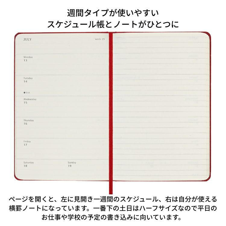 他の画像を見る 【週間レフト】ハードカバー/ポケット カラーカバー 祝日シール付 2026年 手帳 1月始まり モレスキン 週間 スケジュール+ノート[レフト式] ハードカバー ポケットサイズ[カラーカバー]【メール便送料無料】 メール便無料 価格 ¥ 3,630 税込 カートに入れる お気に入りに登録する