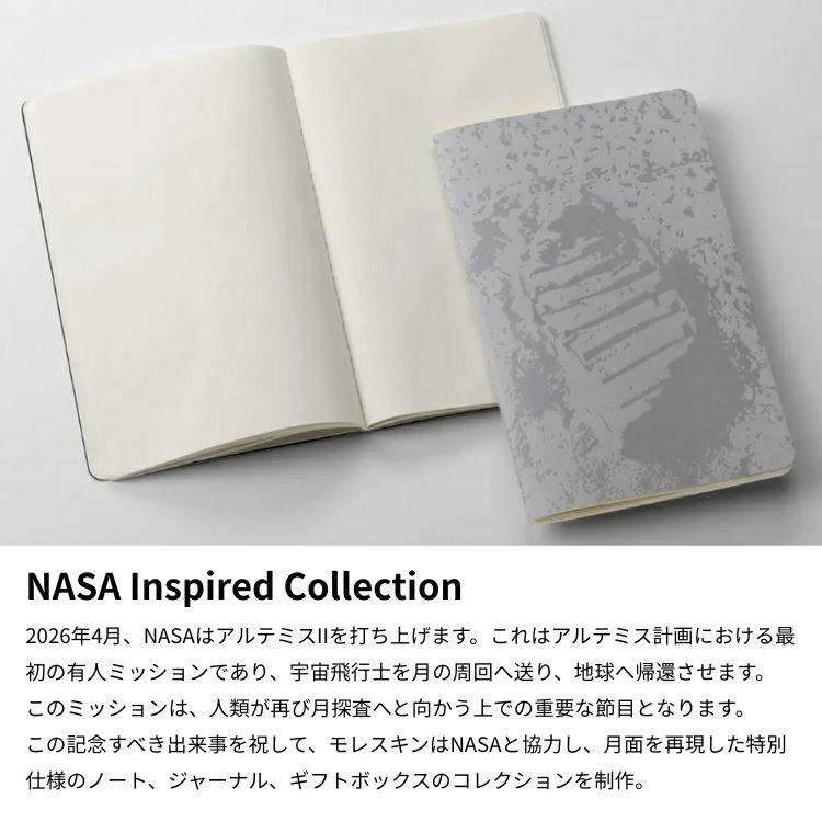 他の画像を見る まるで月面のような質感を再現した、手触り豊かなカバー 限定 モレスキン NASA inspired ノートブック BOX入 ラージサイズ 横罫 ◇ 価格 ¥ 5,500 税込 カートに入れる お気に入りに登録する