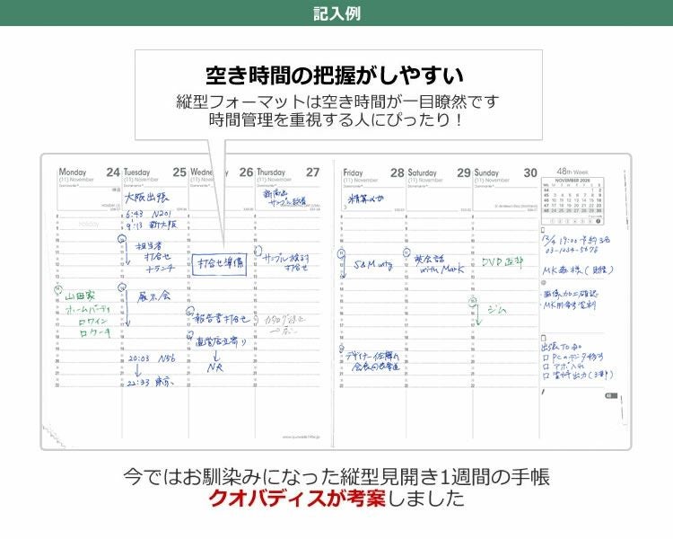 他の画像を見る 手帳 2026 4月始まり スケジュール帳 クオバディス 手帳 4月始まり 2026年 クオバディス 週間 バーチカル[時間軸タテ]10×15cm ビジネス4 本革[スプリットレザー]カバー デュオ【名入れ 無料】 スケジュール帳 名入れ無料 価格 ¥ 9,680 税込 詳細を見る お気に入りに登録する