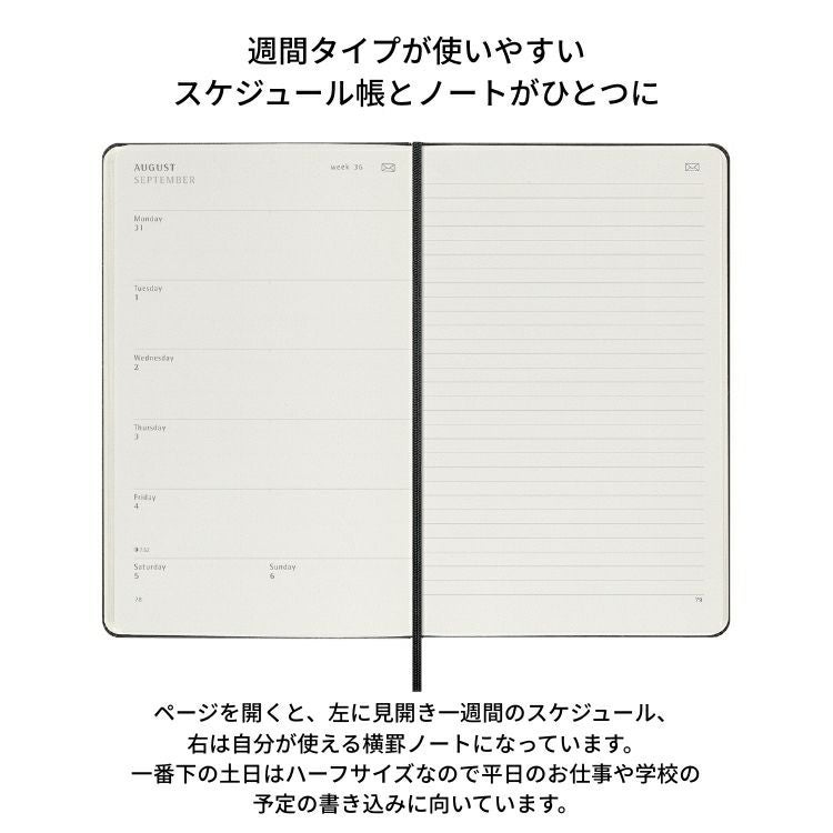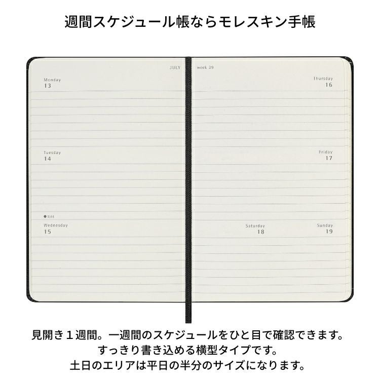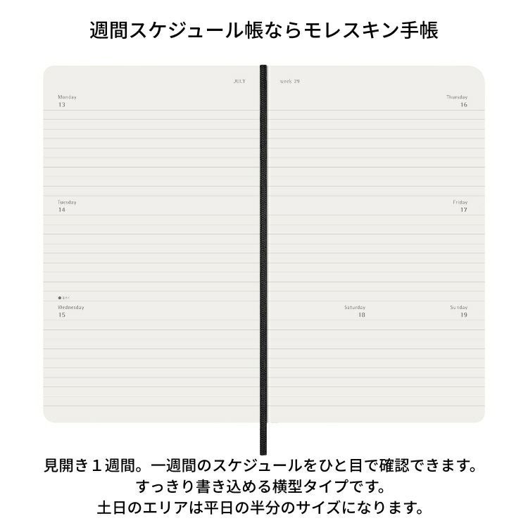 他の画像を見る 【週間ホリゾンタル】ソフトカバー/ラージ ブラックカバー 祝日シール付 2026年 手帳 1月始まり モレスキン 週間 ホリゾンタル[ヨコ型]ソフトカバー ラージサイズ ブラック【レーザー名入れ無料】【メール便送料無料】 メール便無料 名入れ対応 価格 ¥ 4,400 税込 詳細を見る お気に入りに登録する