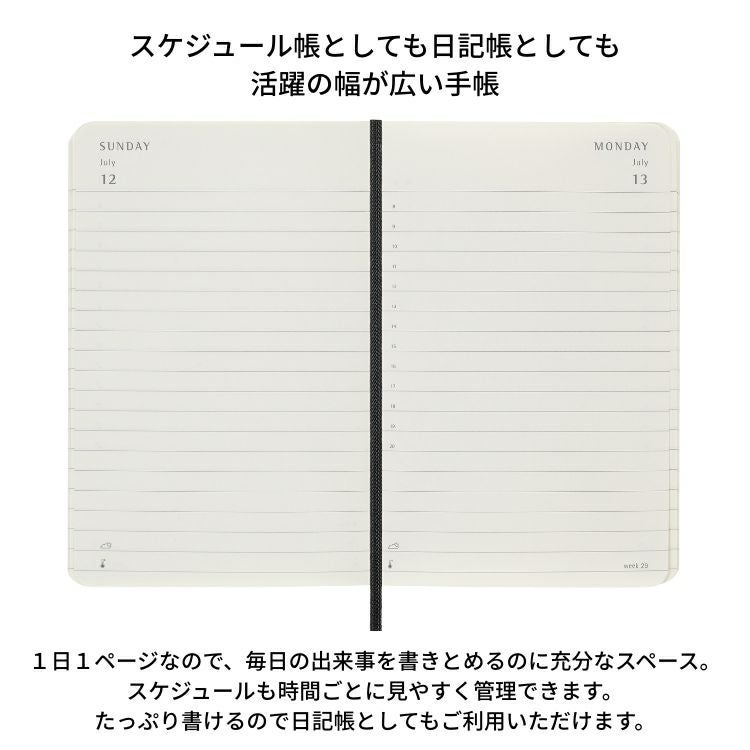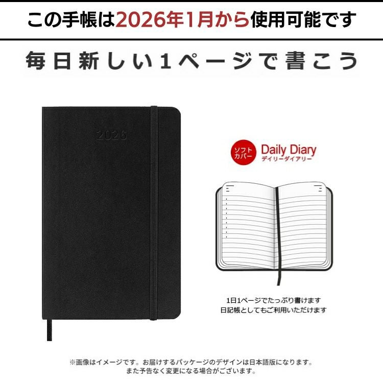 他の画像を見る 【デイリー】ソフトカバー/ポケット ブラックカバー 祝日シール付 2026年 手帳 1月始まり モレスキン デイリー 1日1ページ ソフトカバー ポケットサイズ ブラック【レーザー名入れ無料】【メール便送料無料】 メール便無料 名入れ対応 価格 ¥ 3,850 税込 詳細を見る お気に入りに登録する