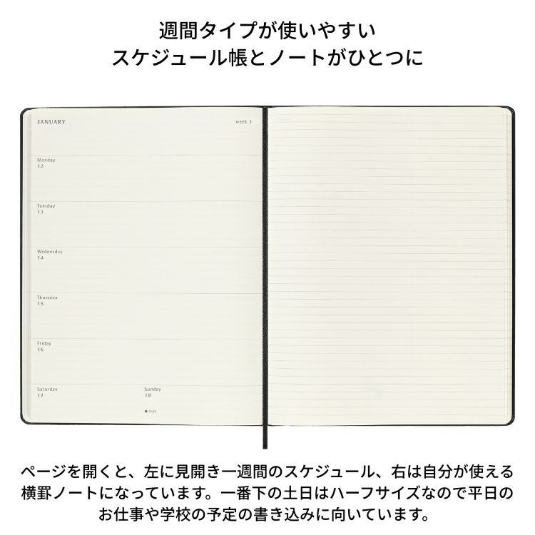 他の画像を見る 【週間レフト】ハードカバー/Xラージ ブラックカバー 祝日シール付 2026年 手帳 1月始まり モレスキン 週間 スケジュール+ノート[レフト式] ハードカバー Xラージサイズ ブラック【レーザー名入れ無料】【メール便送料無料】 メール便無料 名入れ対応 価格 ¥ 4,840 税込 詳細を見る お気に入りに登録する