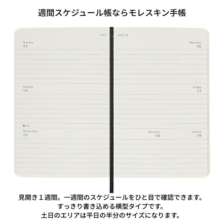 他の画像を見る 【週間ホリゾンタル】ソフトカバー/ポケット ブラックカバー 祝日シール付 2026年 手帳 1月始まり モレスキン 週間 ホリゾンタル[ヨコ型]ソフトカバー ポケットサイズ ブラック【レーザー名入れ無料】【メール便送料無料】 メール便無料 名入れ対応 価格 ¥ 3,630 税込 詳細を見る お気に入りに登録する