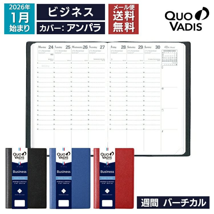 他の画像を見る 手に馴染みやすいサイズが人気のダイアリー 2026年 手帳 クオバディス 週間 バーチカル[時間軸タテ]10×15cm ビジネスプレステージ アンパラ【メール便送料無料】 メール便無料 価格 ¥ 3,080 税込 カートに入れる お気に入りに登録する