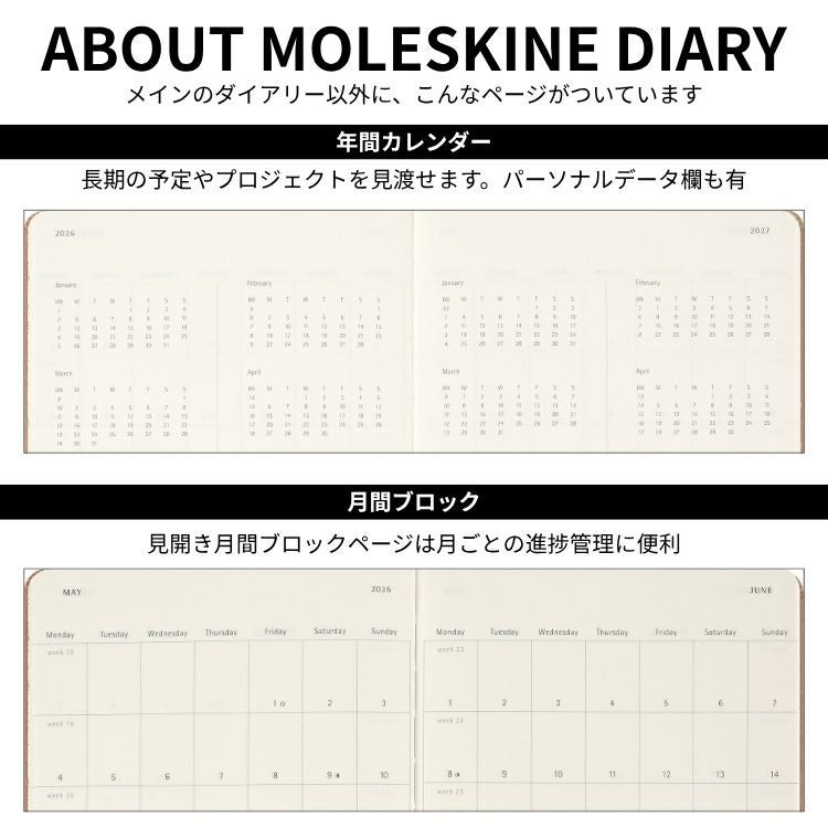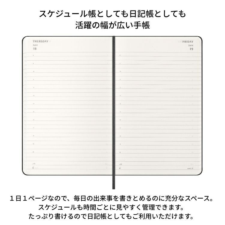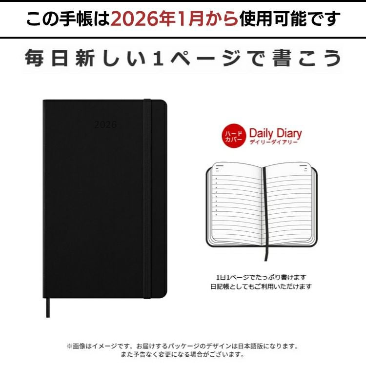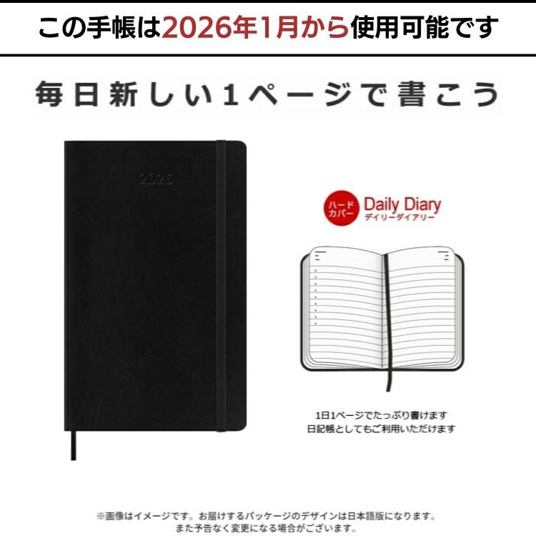 他の画像を見る 【デイリー】ハードカバー/ラージ ブラックカバー 祝日シール付 2026年 手帳 1月始まり モレスキン デイリー 1日1ページ ハードカバー ラージサイズ ブラック【レーザー名入れ無料】【メール便送料無料】 ◇ メール便無料 名入れ対応 価格 ¥ 4,840 税込 在庫切れ 詳細を見る お気に入りに登録する