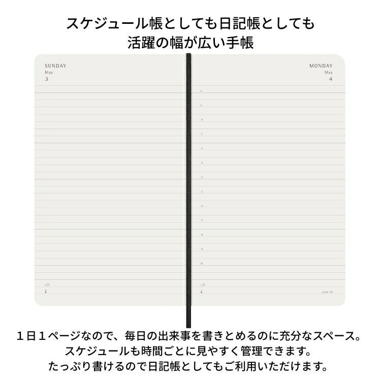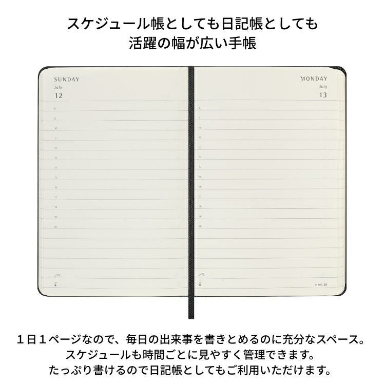 他の画像を見る 【デイリー】ソフトカバー/ラージ ブラックカバー 祝日シール付 2026年 手帳 1月始まり モレスキン デイリー 1日1ページ ソフトカバー ラージサイズ ブラック【レーザー名入れ無料】【メール便送料無料】 メール便無料 名入れ対応 価格 ¥ 4,840 税込 在庫切れ 詳細を見る お気に入りに登録する