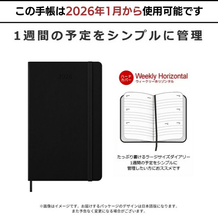 他の画像を見る 【週間ホリゾンタル】ハードカバー/ラージ ブラックカバー 祝日シール付 2026年 手帳 1月始まり モレスキン 週間 ホリゾンタル[ヨコ型]ハードカバー ラージサイズ ブラック【レーザー名入れ無料】【メール便送料無料】 メール便無料 名入れ対応 価格 ¥ 4,400 税込 在庫切れ 詳細を見る お気に入りに登録する