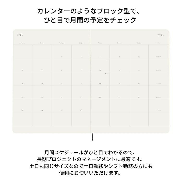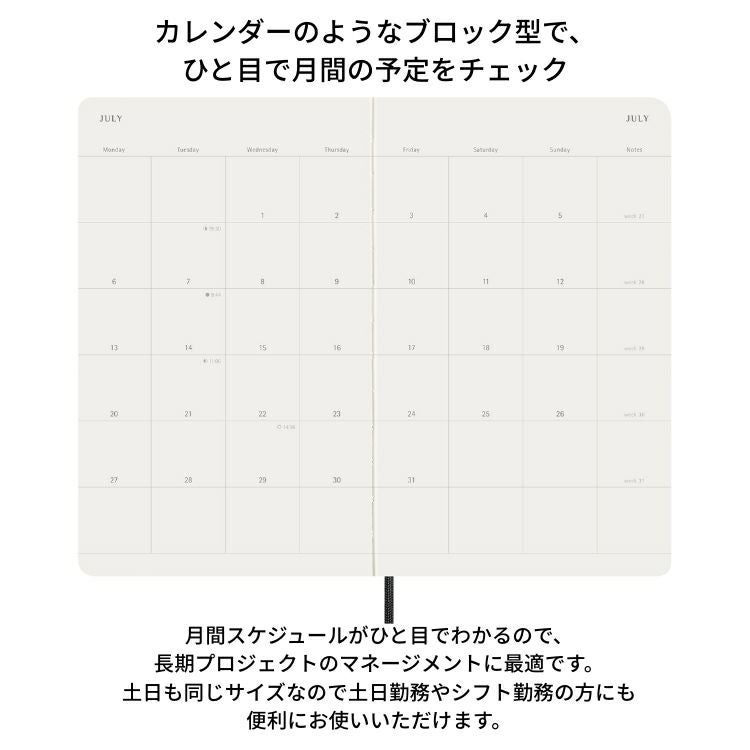 他の画像を見る 【月間】ソフトカバー/Xラージ ブラックカバー 祝日シール付 2026年 手帳 1月始まり モレスキン 月間 マンスリー ソフトカバー Xラージサイズ ブラック【レーザー名入れ無料】【メール便送料無料】 ◇ メール便無料 名入れ対応 価格 ¥ 4,840 税込 在庫切れ 詳細を見る お気に入りに登録する