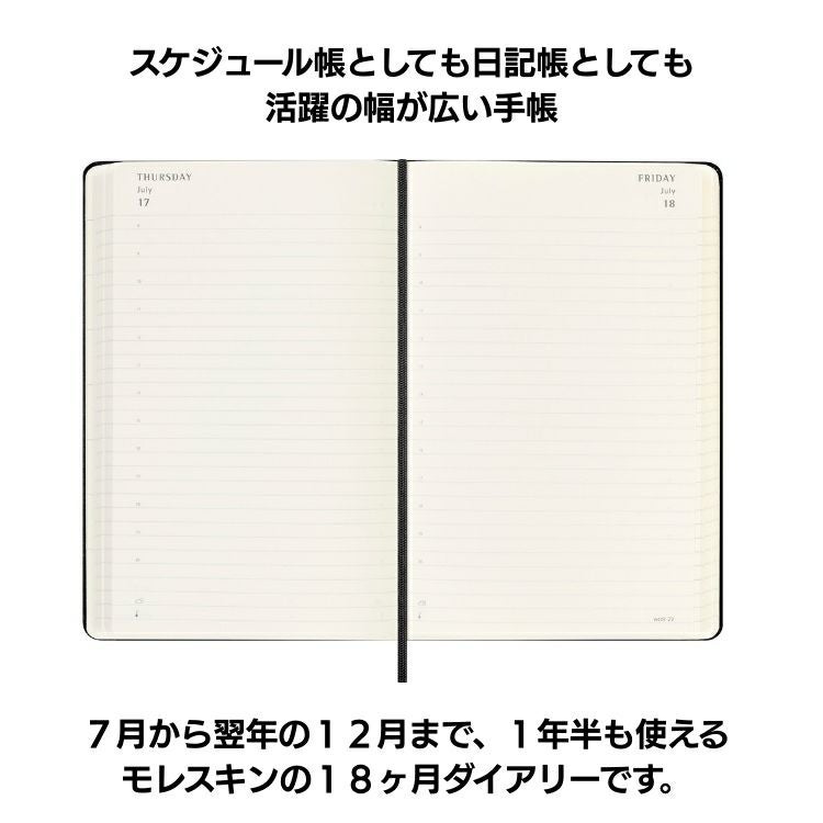 他の画像を見る 手帳 モレスキン 18ヶ月ダイアリー ハード ラージ モレスキン 手帳 2026年 18ヶ月 ダイアリー 7月始まり 1日1ページ デイリー ハードカバー ラージ ブラック【レーザー名入れ無料】 2025年7月-2026年12月 名入れ対応 価格 ¥ 5,280 税込 在庫切れ 詳細を見る お気に入りに登録する