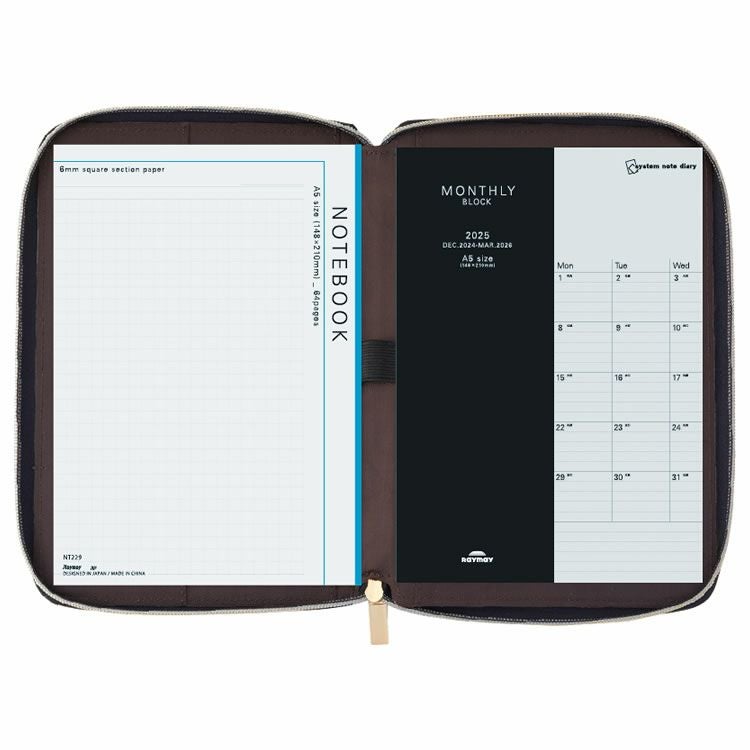 他の画像を見る 手帳 2025年 レイメイ藤井 月間ブロック フォルダイアリー ラウンドファスナー マンスリー + ノートブック A5 サイズ 2024年 12月始まり【名入れ 無料】 6mm 横罫 方眼 ◇ 名入れ無料 価格 ¥ 4,290 税込 在庫切れ 詳細を見る お気に入りに登録する