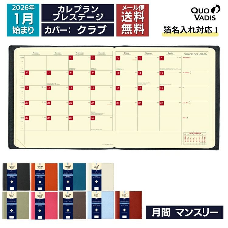 他の画像を見る アイボリーペーパーの薄型マンスリー 2026年 手帳 クオバディス 月間 ブロック 17×8.8cm ビソプランプレステージ クラブ【メール便送料無料】 / 名入れ可能[有料] メール便無料 価格 ¥ 2,640 税込 詳細を見る お気に入りに登録する