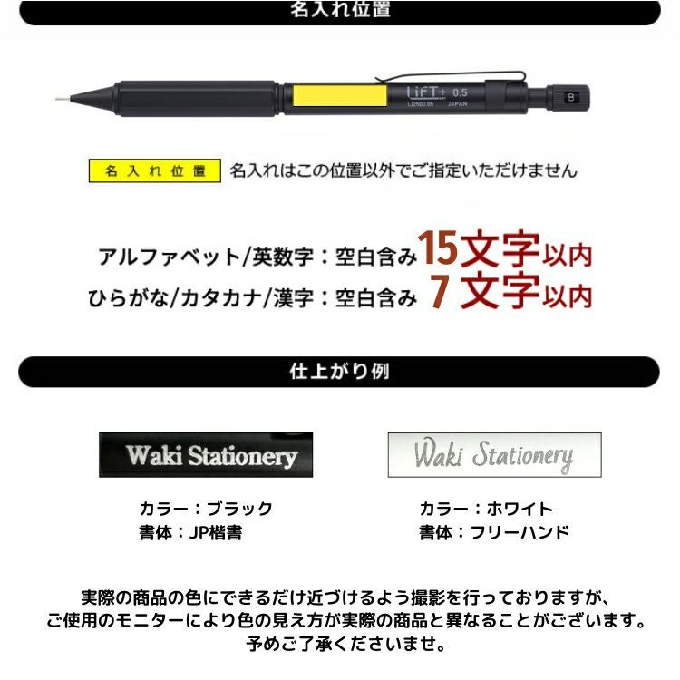 他の画像を見る LiFT+ リフトプラス シャープペンシル 0.5mm LI2500 KITERA【名入れ 無料】 紀寺商事 シャーペン 低重心 ◇ 名入れ無料 価格 ¥ 2,750 税込 詳細を見る お気に入りに登録する