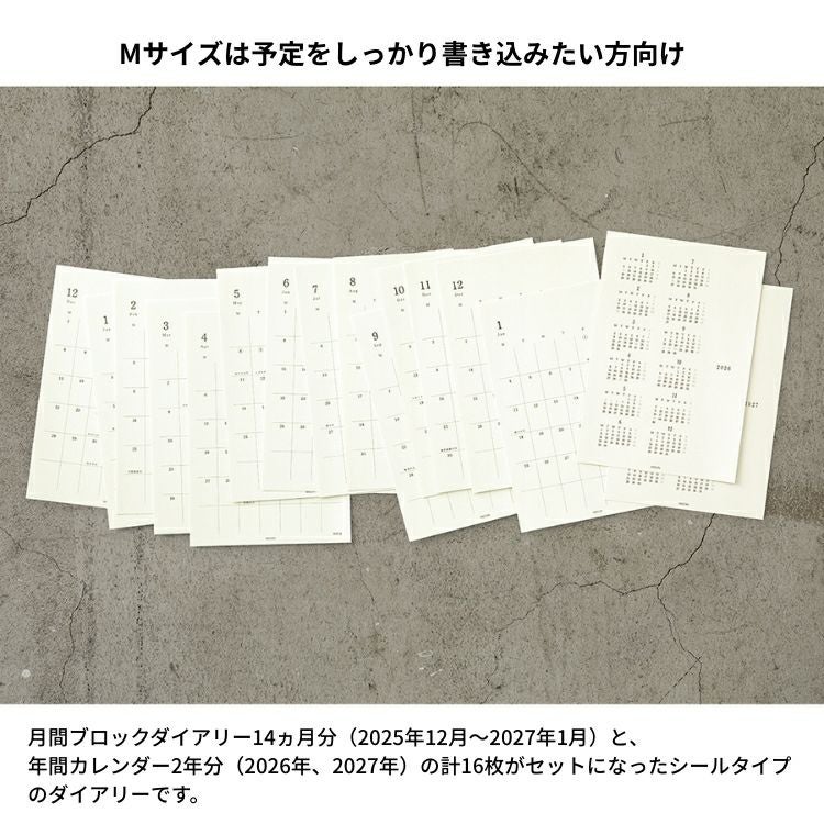 他の画像を見る ノートに貼ってその日の予定・出来事と考えを残す 手帳 2026年 ミドリ 月間ブロック MD ダイアリー シール Mサイズ ◇ 価格 ¥ 1,100 税込 在庫切れ 詳細を見る お気に入りに登録する