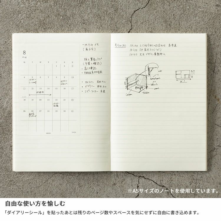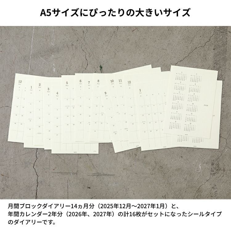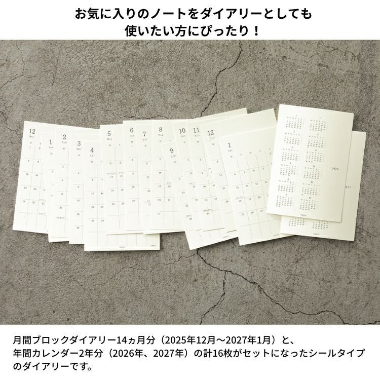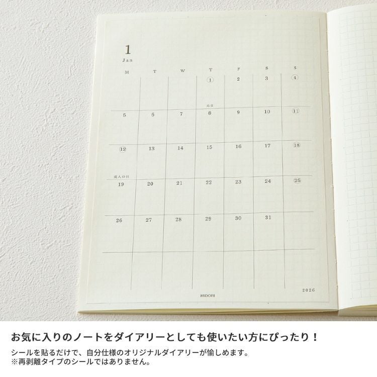 他の画像を見る ノートに貼ってその日の予定・出来事と考えを残す 手帳 2026年 ミドリ 月間ブロック MD ダイアリー シール Sサイズ ◇ 価格 ¥ 770 税込 在庫切れ 詳細を見る お気に入りに登録する