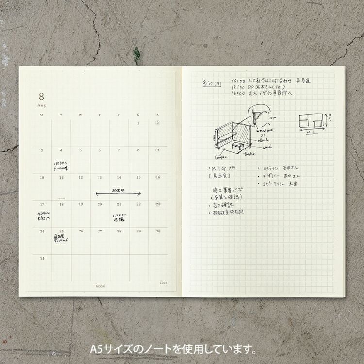 他の画像を見る たっぷりの余白とシンプルで使いやすいフォーマットが魅力 手帳 2026年 ミドリ 月間ブロック MDノート ダイアリー A5 薄型 12月始まり ◇ 価格 ¥ 1,210 税込 在庫切れ 詳細を見る お気に入りに登録する