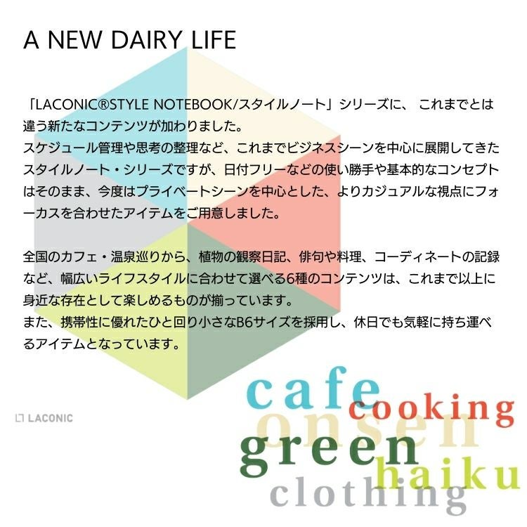 他の画像を見る 手帳 2026年 3月始まり ライフログ 手帳 2026年 4月始まり ラコニック LACONIC B6 ライフログダイアリー LIFE LOG DIARY 週間 ハードカバー【メール便送料無料】 スケジュール帳 2026年3月から使用可 ◇ メール便無料 価格 ¥ 2,530 税込 カートに入れる お気に入りに登録する