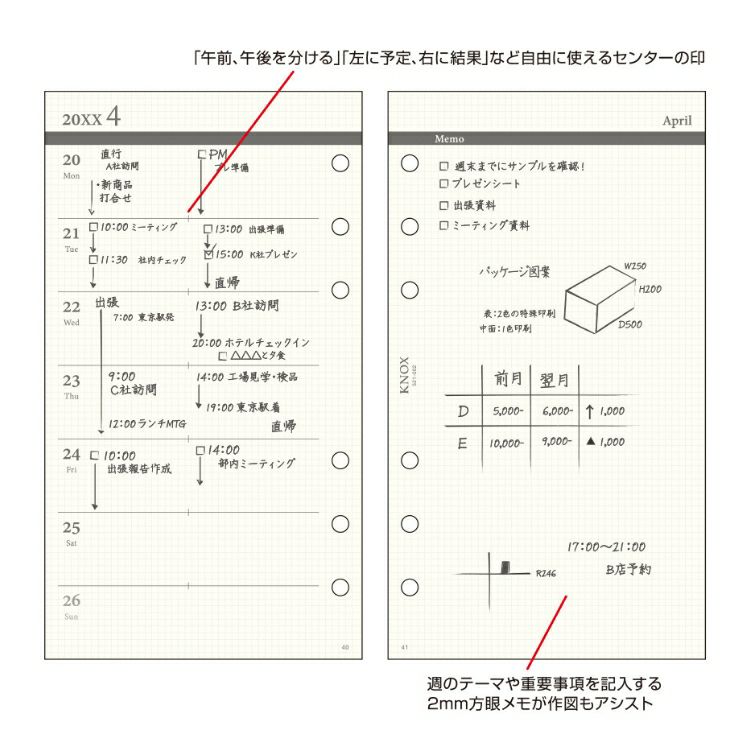 他の画像を見る 【バイブル】システム手帳リフィル 手帳 2026年 ノックス システム手帳 リフィル 日付入 見開き1ヵ月間ブロック式+片面1週間片面メモ バイブルサイズ 521-152 価格 ¥ 1,540 税込 カートに入れる お気に入りに登録する