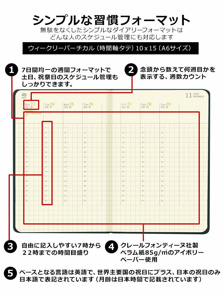他の画像を見る 一週間の流れが一目でわかるフォーマット 手帳 2026年 ロディア 週間 ウェブプランナー ウィークリーバーチカル[時間軸タテ] 14.8×21[A5サイズ]【名入れ 無料】【メール便送料無料】 メール便無料 名入れ無料 価格 ¥ 4,180 税込 詳細を見る お気に入りに登録する
