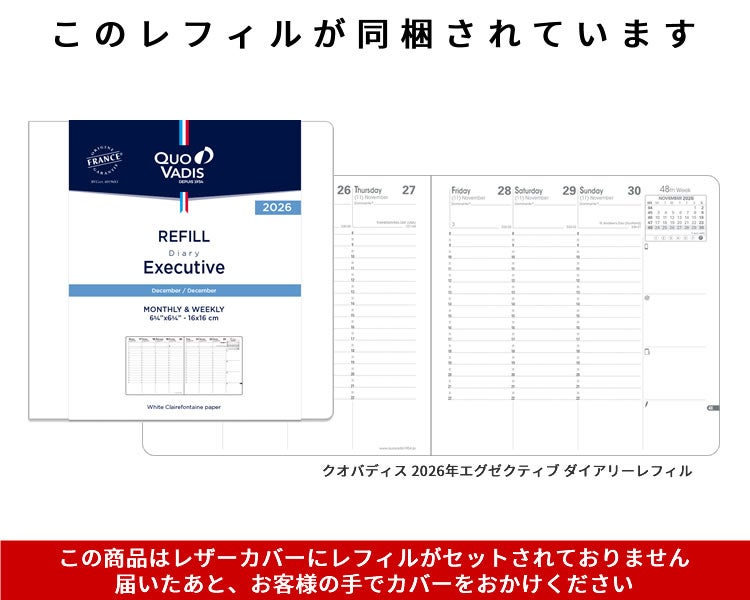 他の画像を見る クオバディス 2026 手帳 ダイアリー スケジュール帳 2026年 手帳 クオバディス エグゼクティブサイズ 週間 バーチカル 16×16cm正方形 和気文具オリジナル 本革カバー[ワックスレザー] エグゼクティブ リフィル付き【名入れ 無料】 ◇ 送料無料 名入れ無料 価格 ¥ 14,520 税込 詳細を見る お気に入りに登録する