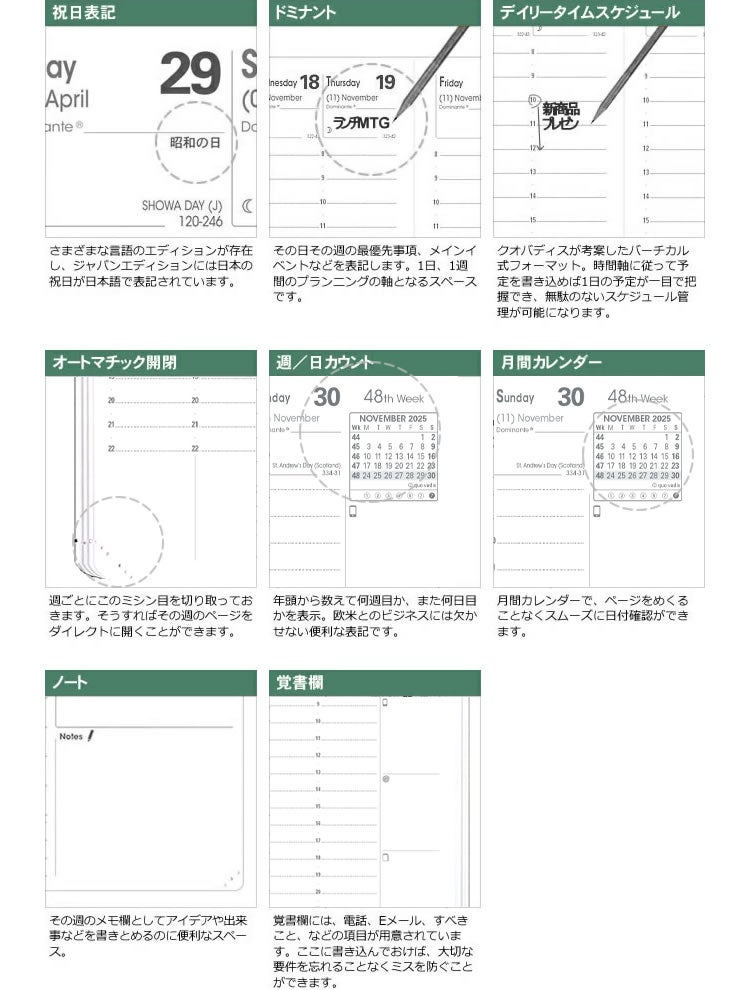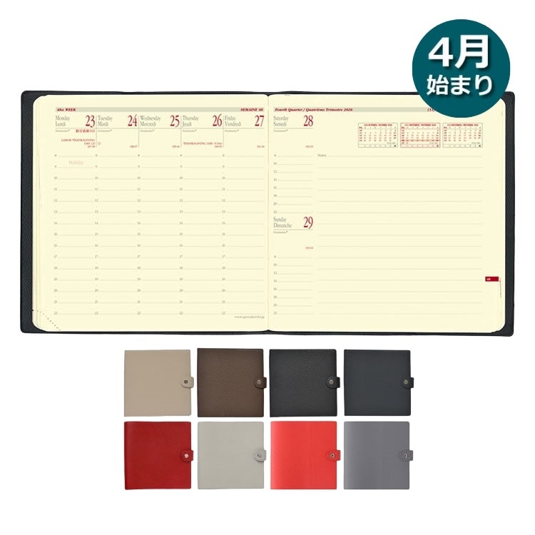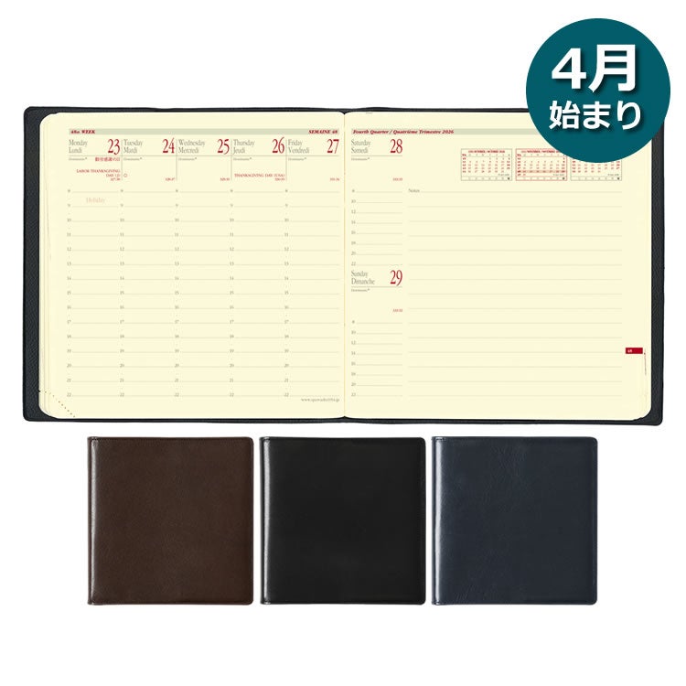 他の画像を見る 手帳 4月 始まり 2026年 クオバディス 週間 バーチカル 時間軸タテ 16×16cm 正方形 エグゼクティブ4 クラブ 【メール便送料無料】 / 名入れ可能[有料] メール便無料 価格 ¥ 4,840 税込 詳細を見る お気に入りに登録する