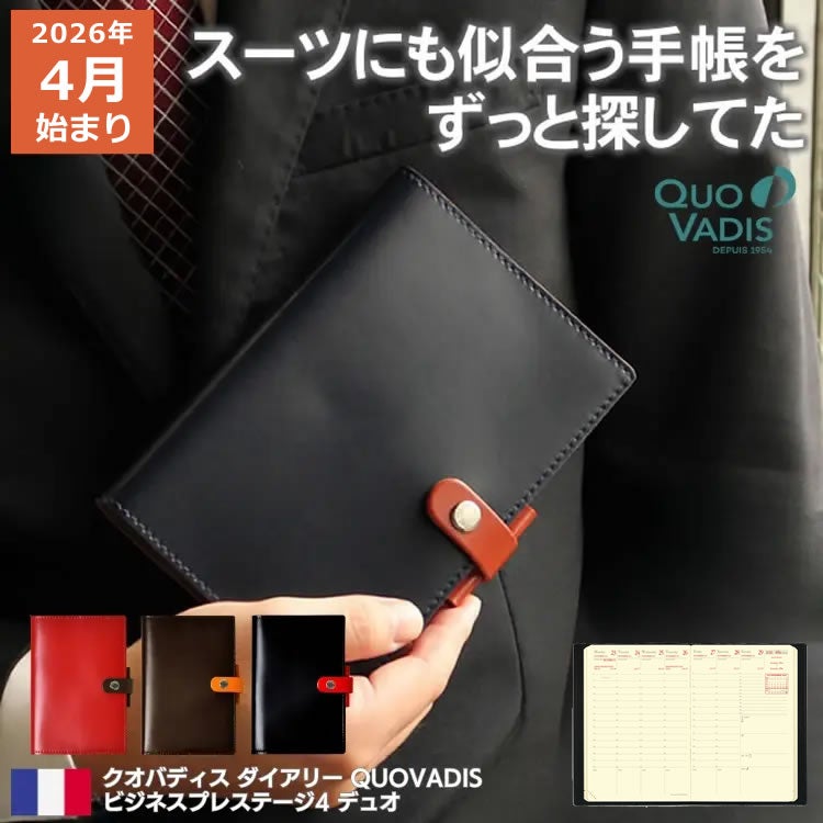 他の画像を見る 手帳 2026 4月始まり スケジュール帳 クオバディス 手帳 4月始まり 2026年 クオバディス 週間 バーチカル[時間軸タテ]10×15cm ビジネス4 本革[スプリットレザー]カバー デュオ【名入れ 無料】 スケジュール帳 名入れ無料 価格 ¥ 9,680 税込 在庫切れ 詳細を見る お気に入りに登録する
