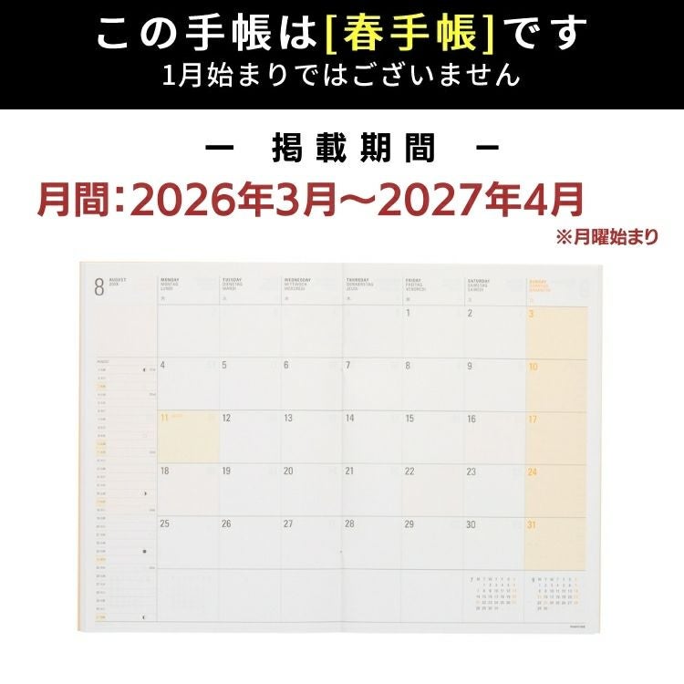 他の画像を見る 手帳 2026年 4月始まり ハイタイド HIGHTIDE B6スリムサイズ レプレ 月間ブロック【名入れ 無料】【メール便送料無料】 スケジュール帳 マンスリー ◇ メール便無料 名入れ無料 価格 ¥ 2,310 税込 詳細を見る お気に入りに登録する
