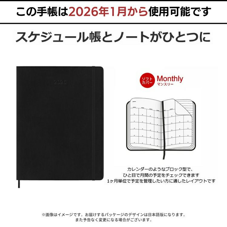 他の画像を見る 【週間レフト】ソフトカバー/Xラージ ブラックカバー 祝日シール付 2026年 手帳 1月始まり モレスキン 週間 スケジュール+ノート[レフト式] ソフトカバー Xラージサイズ ブラック【レーザー名入れ無料】【メール便送料無料】 ◇ メール便無料 名入れ対応 価格 ¥ 4,840 税込 在庫切れ 詳細を見る お気に入りに登録する