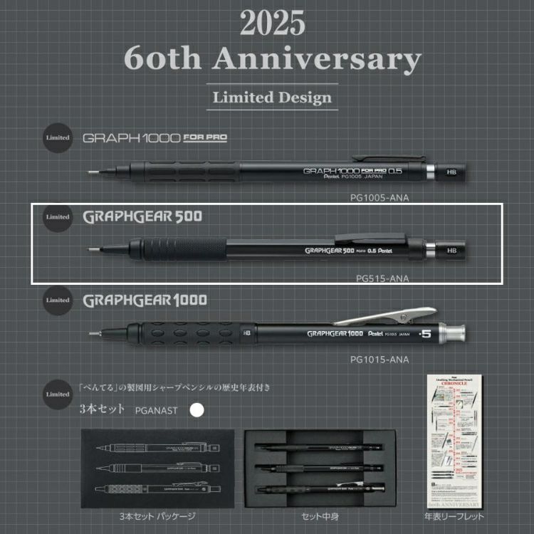 他の画像を見る 製図用シャープペンシル発売60周年を記念した限定モデル 購入特典付! 60周年 限定 ぺんてる 製図用シャープペンシル グラフギア 500 GRAPHGEAR Pentel シャーペン 価格 ¥ 1,100 税込 カートに入れる お気に入りに登録する