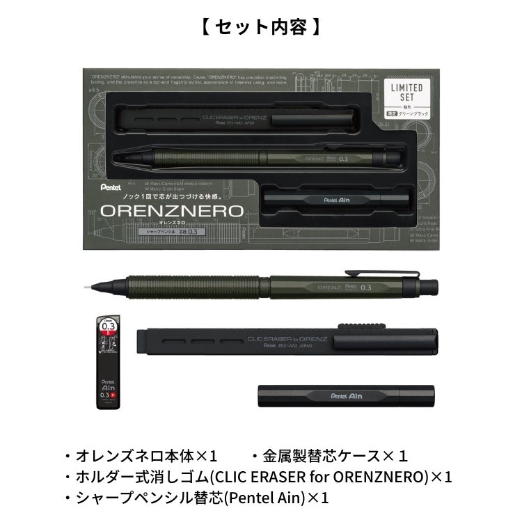 他の画像を見る 替芯ケースとホルダー式消しゴムをセットした限定パッケージ 限定セット ぺんてる オレンズネロ Pentel【メール便送料無料】 PP3003 PP3005 グリーンブラック カーボンブラック 0.3mm / 0.5mm メール便無料 価格 ¥ 7,920 税込 カートに入れる お気に入りに登録する
