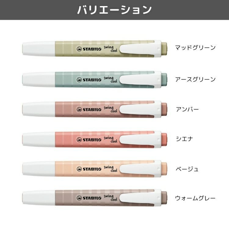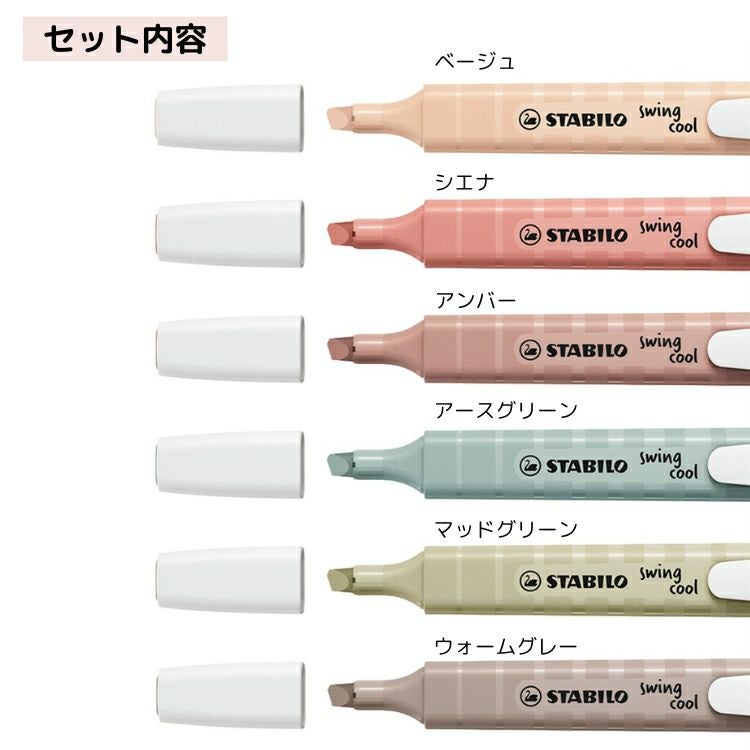 他の画像を見る 綺麗にマーキングできるペン スタビロ STABILO スイングクール ネイチャーカラー 6色セット マーカー 蛍光ペン ◇ 価格 ¥ 1,188 税込 カートに入れる お気に入りに登録する
