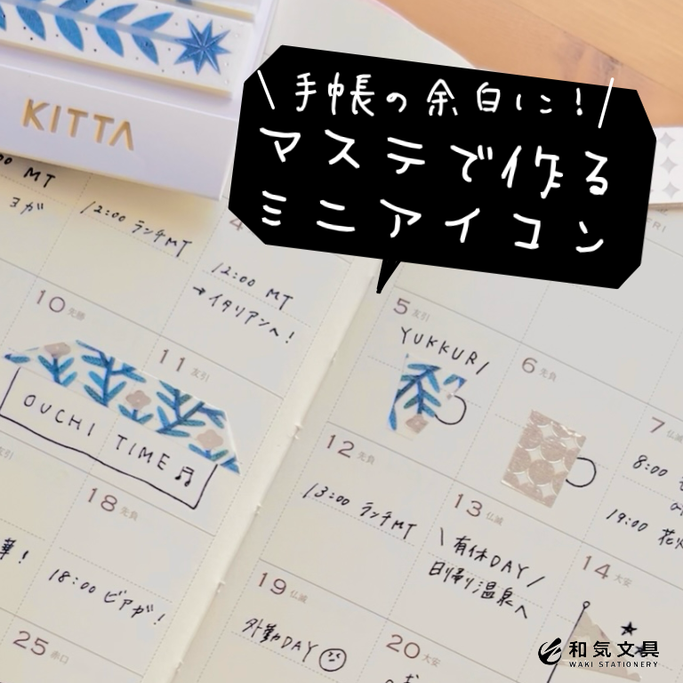 こんにちは!和気文具スタッフです♪2025年も半分が過ぎ、そろそろ来年の手帳はどう使おう?何を使おうかな?と考え中の方もいるのではないでしょうか^ - ^/今日は手帳とお手持ちのマステを可愛く使えるプチデコをご紹介!マンスリーページなどの余白を彩る「ミニアイコン」をマステで作ってみます! 皆さんは日常使いの手帳にデコはしますか?「手帳デコ用のノートは華やかに彩るけど、普段の手帳はボールペンで書くだけだな」という方も多いのではないでしょうか。私自身もそうでして、普段用の手帳は黒一色。(... -