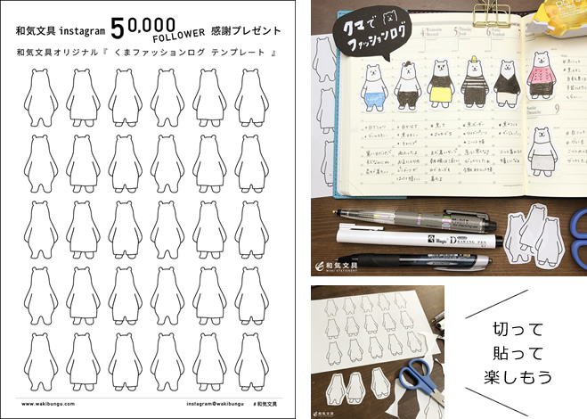 和気文具オリジナル『 くまファッションログ テンプレート 』のPDFダウンロード&ネットプリント配信