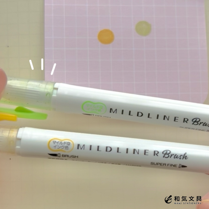 ちなみに合わせるペンは同系色であればどんな色でも綺麗にまとまります。今回インクパッドはバーサマジックのGD11(黄色)とGD80(みどり)を使い、ペンはマイルドライナーブラッシュのマイルドレモンイエローとマイルドグリーンを合わせました。