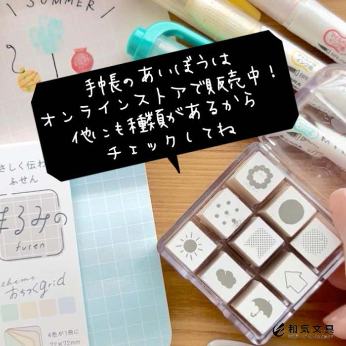 今回使った手帳のあいぼうはオンラインストアで好評販売中!「マーク」柄の他にも種類豊富なのでぜひチェックしてみてくださいね。今回の記事もご覧くださりありがとうございました!この夏も文具時間を楽しみましょう〜!