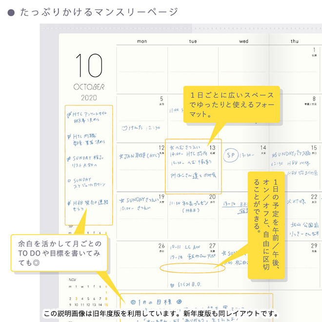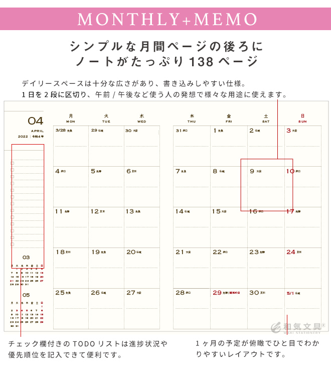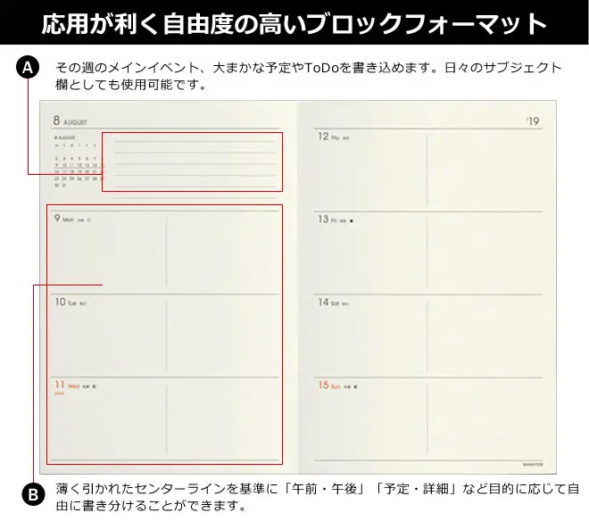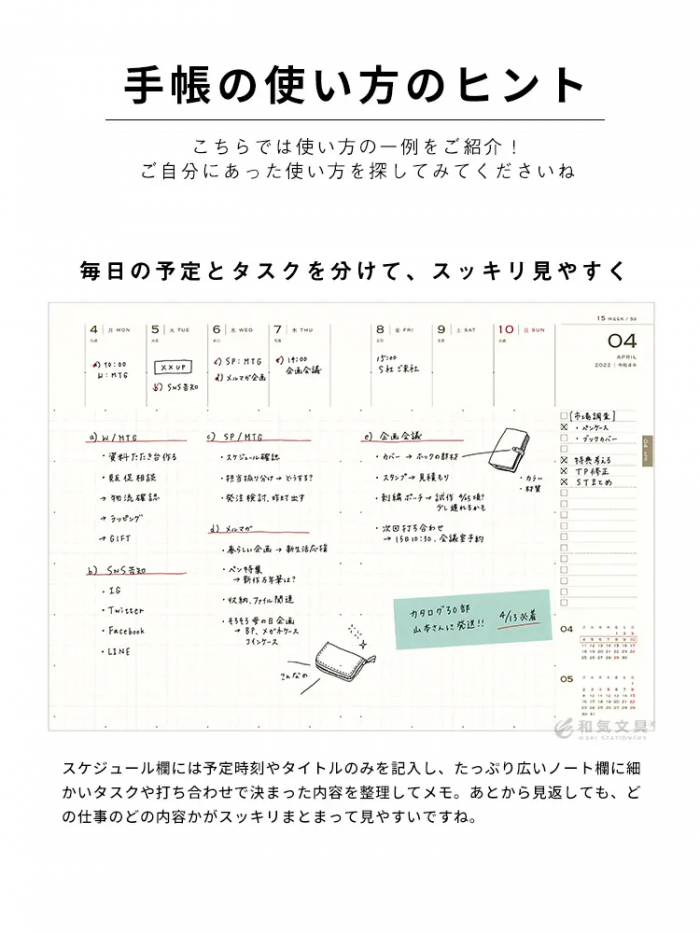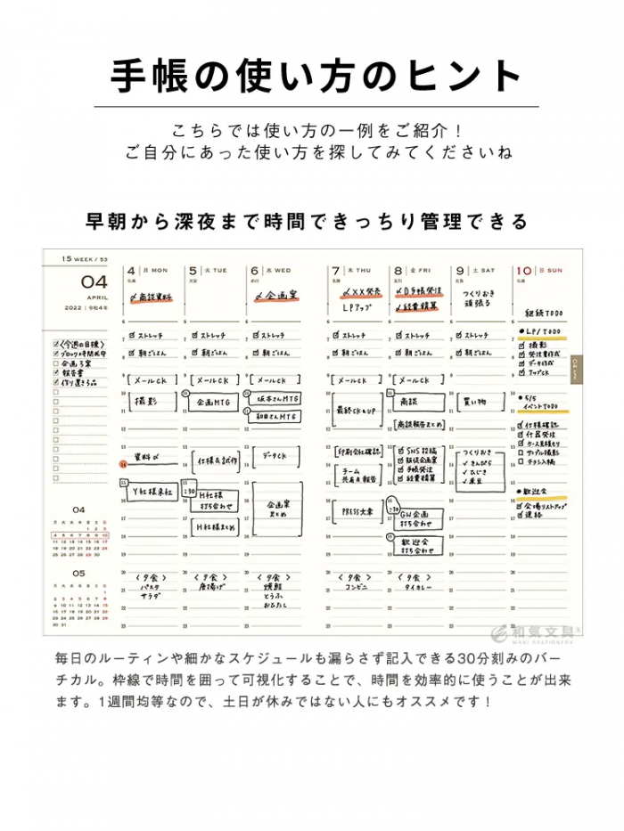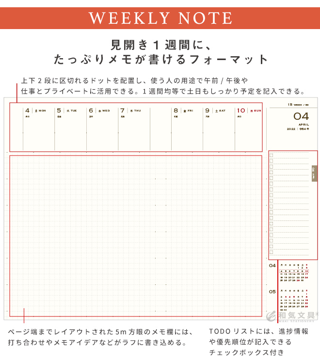 メモがたっぷり取れる!1週間を見開きで管理できます