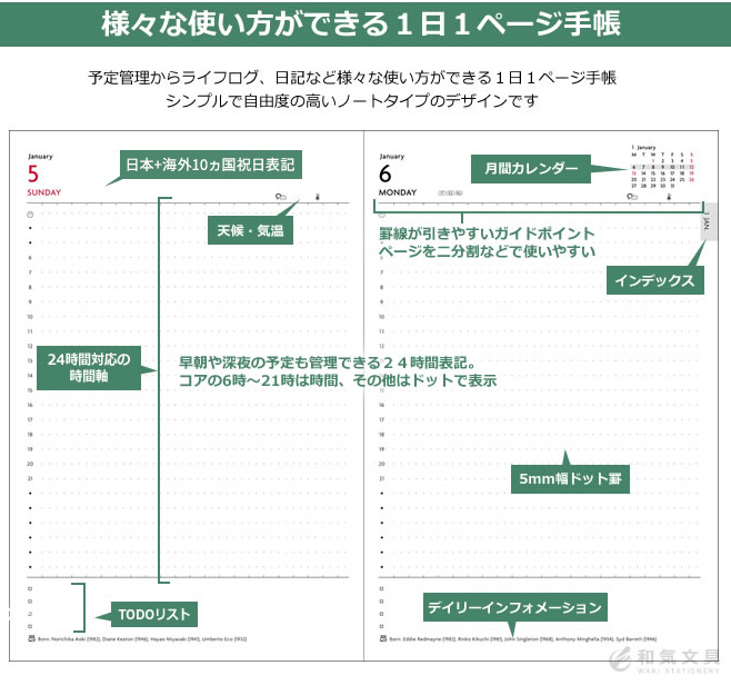1日1ページのレイアウトで毎日を楽しく彩る手帳