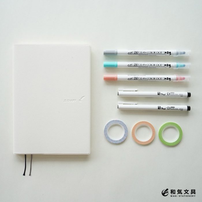 今回使うクリーンカラードットの一番のオススメポイントは、急いでいる時でも「簡単で綺麗に」丸を付けられるのがとっても気持ちの良いアイテムです。特にJSダイアリーの方眼5mmにぴったり、美しく収まります。